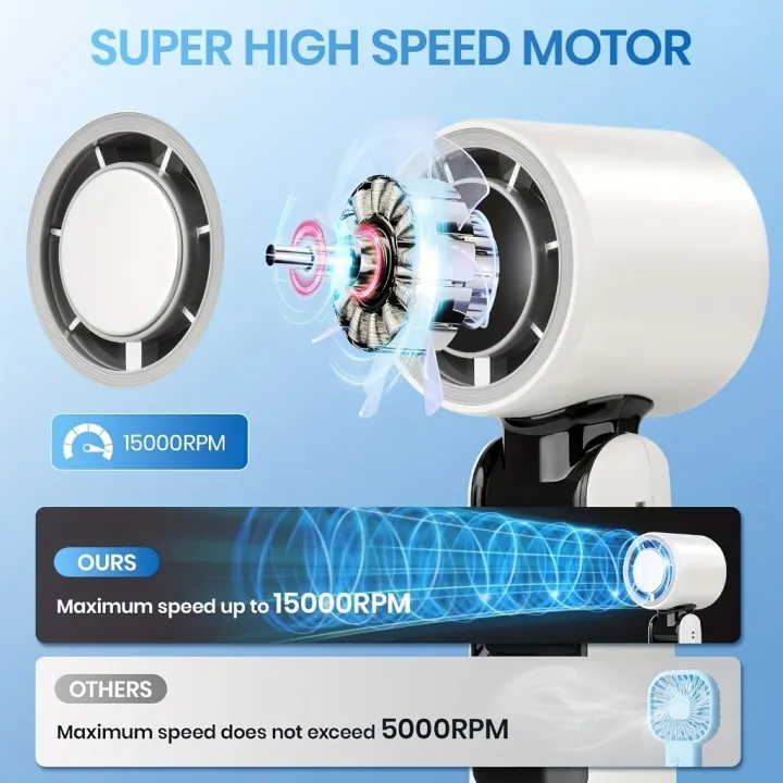 【6000mAh】Mini Turbo Fan with Light | 100-Speed Digital Display