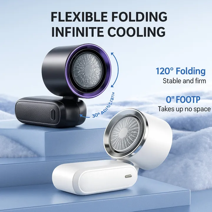 Fan folds 180° to any angle — use handheld, tabletop, or hanging.